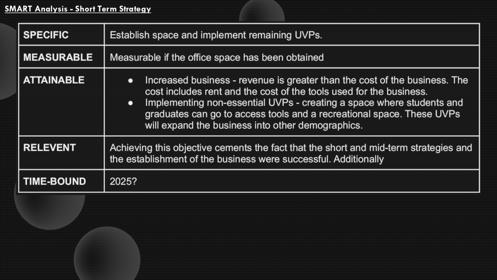 At the present time, I have formed three SMART strategies for the business. [1] Short Term Strategy, [2] Mid-Term Strategy, [3] Long Term Strategy.